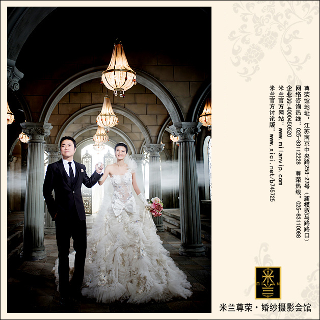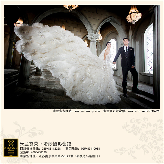 初遇米兰,是在西祠首页,看到一张精美的婚纱照,当时目光马上被吸引住了,见多了ps的我顿时觉得这张婚纱照比一般的婚纱照要大气,感觉景要真实唯美得多,而且强烈的油画效果冲击着我的视觉,然后我添加了米兰客服qq,详询了地址。来到米兰会馆,华丽的婚纱,奢华的装潢让我顿时对这次的婚纱之旅充满信心,客服晶晶接待了我,向我一一展示了米兰的各种场景以及模特图片,当看到大气有层次感的罗马场景和奢华的斜肩婚纱时,我当时就确定了,我一定要在米兰拍,那件婚纱是我大爱,只要穿上那件婚纱,这辈子就值了。 从选婚纱到拍照再到后期选照片,伴娘,摄影师,化妆师,客服经理都不厌其烦的满足我的各种要求,看着伴娘小小的身影跟着我,抱着很多婚纱给我试穿,拍照时在旁边不时给我提裙子,扶着我,拿东西,化妆师就像完成一样完美的艺术品,连一丝小小的头发掉下来都马上喊停,给我把头发弄好,整理妆容,摄像师不停调整我的动作姿势,力求完美,其他工作人员则在旁边打光,整理裙摆,浩浩荡荡一群人,有种大牌明星出行的错觉,这一天,我被米兰被老公捧成了最骄傲的公主。 我是一个挑剔的人,无论是妆容还是拍照,可是米兰的妆容让我无从挑剔,打心里百分百的满意,在我看来就是完美,而拍照时,我一次又一次的提出要求,摄影师也不厌其烦的给我调整角度,最终达到了我要求的终极效果。有人说,米兰贵,可是真心觉得值,人一辈子有多少年的青春呢,我想在自己最美的年华留住最美的我。而老公,事前也觉得不就张照片么,没必要这么贵,到最后被米兰的高端大气以及油画效果所吸引而升级套系,是觉得米兰能让我更漂亮,他说拍照时,摄像师调整姿势要求他看着我,他当时近距离的看,都看迷了,从没看过这么漂亮的我,也没这样深情的看着我,让他觉得回到了恋爱期的甜蜜,当闹矛盾时,看着手机上的婚纱照,顿时觉得有个这么漂亮的老婆,还有什么不能退步的。而我,每次看到手机上的婚纱照,觉得有个这么舍得为自己付出的老公,还有什么好争执的呢。