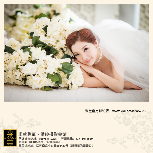 米兰家的新娘各个都能拍的美美的,米兰家拍出来的婚照总能展现出新娘恬静美丽的一面,总是有一种闲适,安静的气质之美,今天就跟大家一起来欣赏一下米兰家那些恬静的美照吧~~~ 首先就很喜欢米兰家对光线的运用,可以营造出一种恬淡静适的感觉,沉浸在甜蜜的爱情中,不为外界所打扰,心中是满满的爱与满足,米兰家的新娘都是那么的幸福~~~其次新娘的造型和妆面也是非常的美哦,米兰家化妆师的一双巧手为新人们量身打造最适合自己的妆容,妆面也是非常的清透哦,很清新自然呢~~~最后就是那一份心境了,只有内心的平静才能静静的品一杯酒,赏一朵花,而米兰家的摄影师也是抓拍了那不禁意间流露出的一份气质~~~