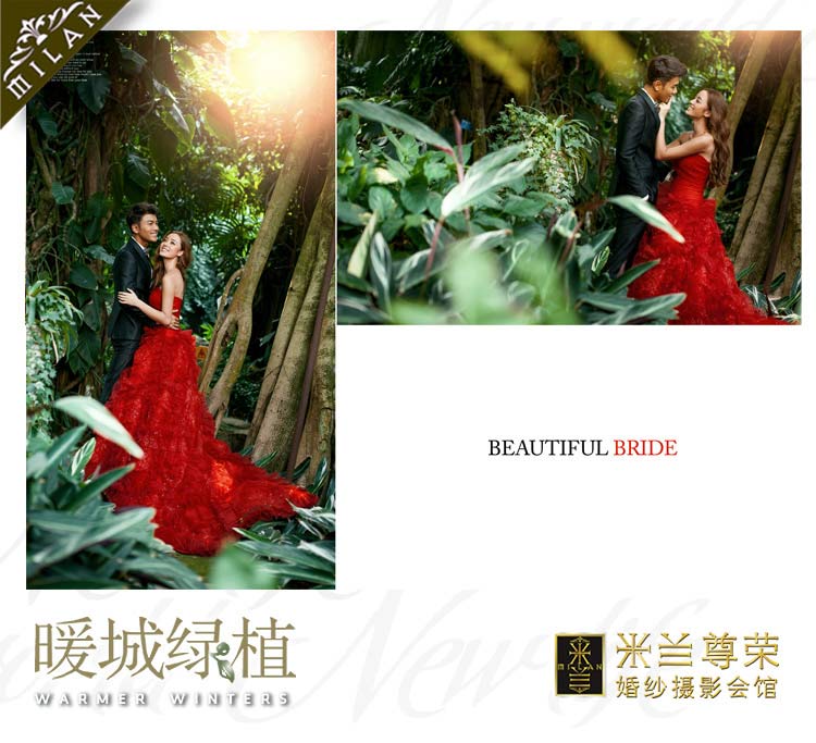 米兰家的彩色婚纱真的很多哎,拍照时穿彩色的婚纱效果不错哦