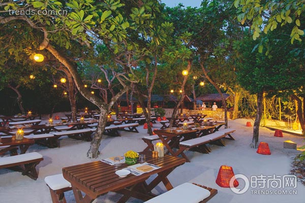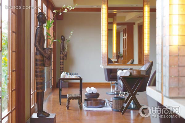 蜜月设施 在安缦普罗,可谓将美食与美地完美结合。灯火通明的俱乐部采用纯木建造,屋梁和立柱用的是菲律宾产拉万木,地板用的则是巴西紫檀木。休闲室内摆放着宿务产藤椅,与椰壳小桌相映成趣。
