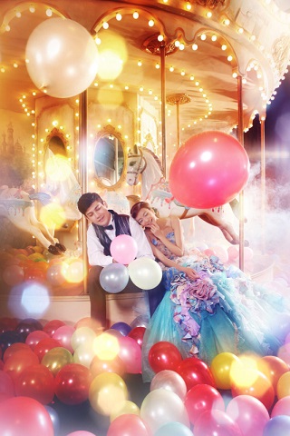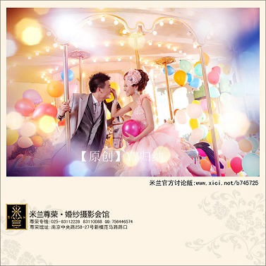 婚照,一种暖暖的幸福的感觉涌上心头。“旋转的木马,让你忘了伤。”是啊,有什么比骑在旋转木马上慢慢的转圈圈更令人感到童话般美好的呢。