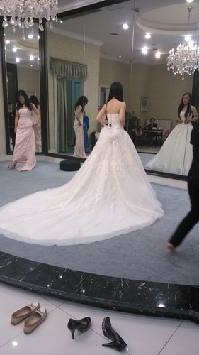 楼主身材很好啊~相信穿什么样的婚纱都会很好看的呢