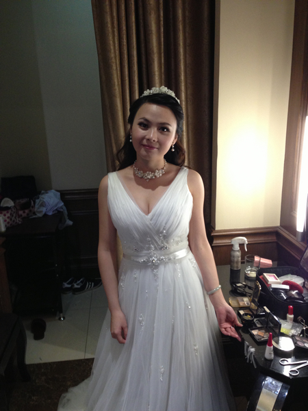 这个是第一套出外景的造型,楼主的外景选的是伯丁顿,小清新的感觉,因此外景的婚纱也是选的非常干净清爽的。而且结合第一次婚照的教训,特地选择了一件双肩带的衣服,防止发生衣服穿久了下坠的情况哦。不过呢,对于搭配的项链不是很喜欢,于是在出门之前给摘了下来哈。