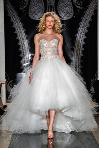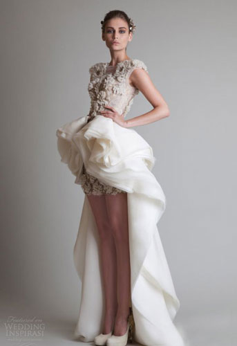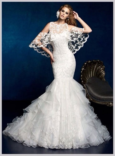 欧根纱作为鱼尾裙有挺括而透明的质感,非常具有梦幻诱人的姿态。