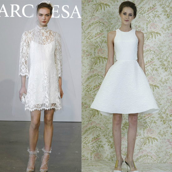 对于身材的准新娘来说,拖尾的婚纱实在是有些拖沓,不仅会让你那娇小的身材整个埋在婚纱中,还会让你看上去有些滑稽。对于娇小新娘来说,短摆婚纱真的是首选,拉高的腰线可以在视觉上拉长身材,让你变身长腿美女。再搭配一双高跟婚鞋,瞬间娇小变高挑。angel sanchez2015春夏,marchesa2015春夏都有俏皮的短摆婚纱,是身材娇小的准新娘们不错的选择。