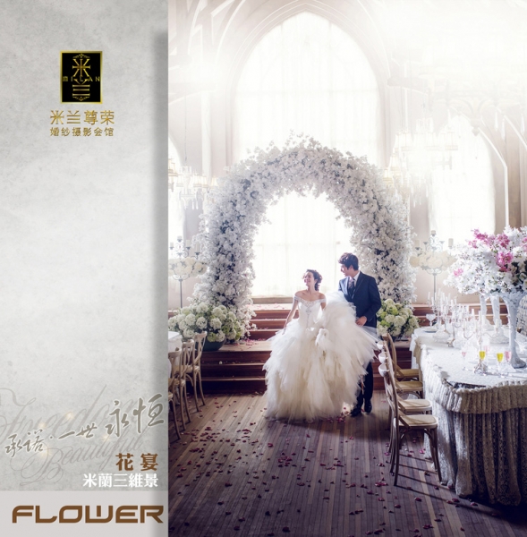 1、大家都知道人在侧面上扬45度脸部是最完美的,但是也许大家没有发现在头部上扬45度角侧面的同时,只要新人的嘴角微微舒展开来,那么从侧面看起来就像是新人在很幸福的微笑哦!