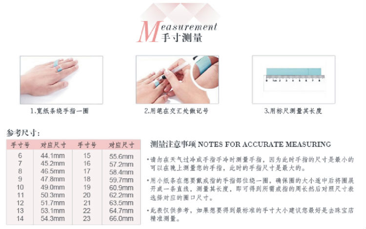 求婚戒指的尺寸和款式如果并不知道她指环的尺寸,而又想在求婚的时候给她惊喜,那事先在她不知情的情况下测量好女朋友的手寸是非常重要的一步! 如何测量?攻略一:趁她睡觉的时候,偷偷拿个纸条或红绳绕在需要佩戴的手指一圈测量;