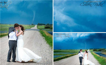 南京婚纱摄影 当地时间7月5日,尼斯卡等人正在一处碎石路上准备为一对新人拍婚纱照。 当时,远处的天空显得十分昏暗,并时有旋风出现。尼斯卡说:“现场只有新娘、新郎和我三人。就在我们准备拍照时,一个巨大的龙卷风在我们后方形成。尽管对此感到惊讶,但我们没有选择退缩,而是希望记录下这难得一见的场景。” 图为新婚夫妇在龙卷风前所拍摄的唯美婚纱照 仅需9元即可换购7899元精品好礼哦!
