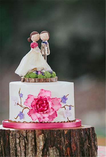 粉红色的鲜花装饰的婚礼木桶蛋糕 粉红色的鲜花装饰的婚礼木桶蛋糕 这款单层蛋糕图案是华丽的粉红色的玫瑰,但它最可爱的地方是下面的木桶设计,在蛋糕的顶部是一对小夫妻,象征着恩爱的两个人,既甜蜜又颇有趣味性。