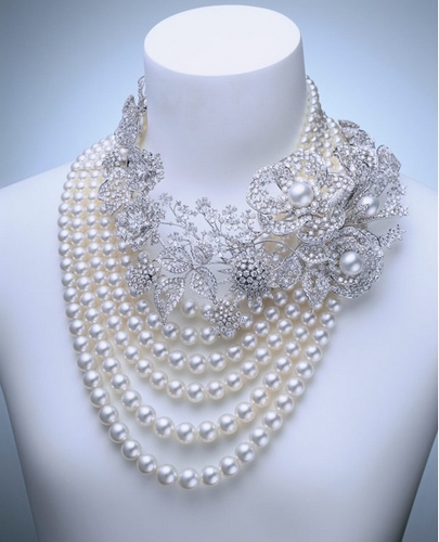 mikimoto 高级珠宝系列 mikimoto 高级珠宝系列white bouquet 18k白金日本akoya珍珠、白南洋珠项链配钻石。
