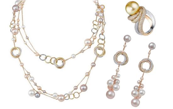 卡地亚trinity pearl三色金珍珠系列 卡地亚trinity pearl三色金珍珠系列 项链、戒指、耳环:三色金,淡水珍珠,钻石。