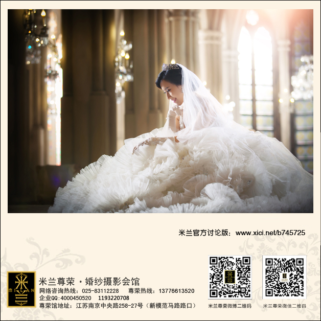 淡雅中唯美的流入 风格特色:利用以假乱真的数码背景和不同的婚纱礼服,以淡雅的色调为主,表现优雅、纯情和甜美的感觉。