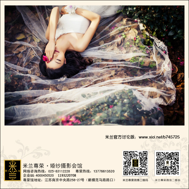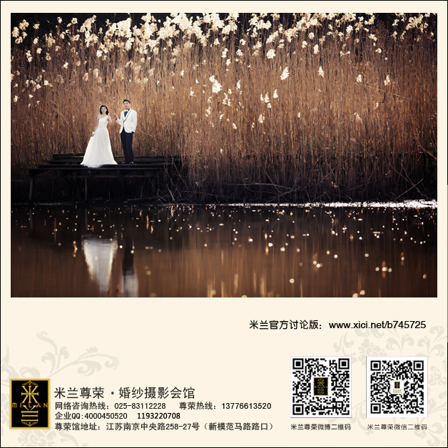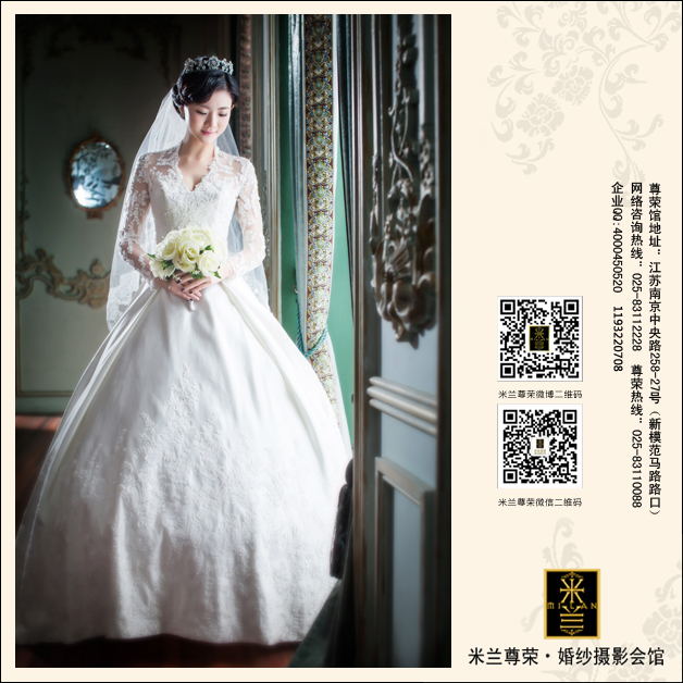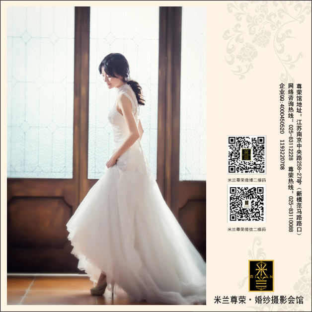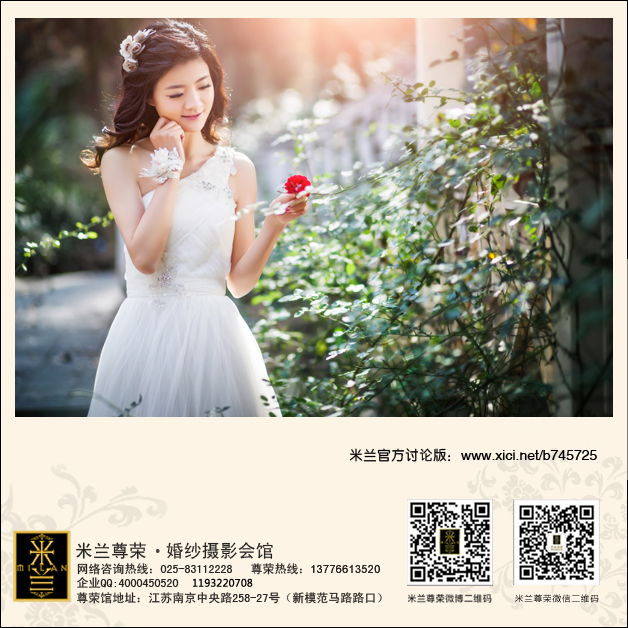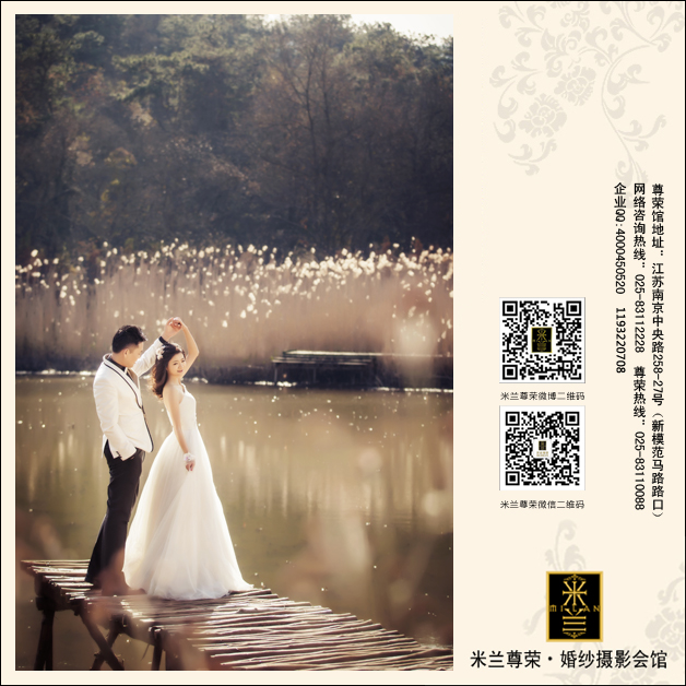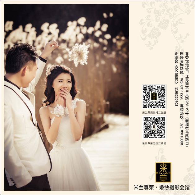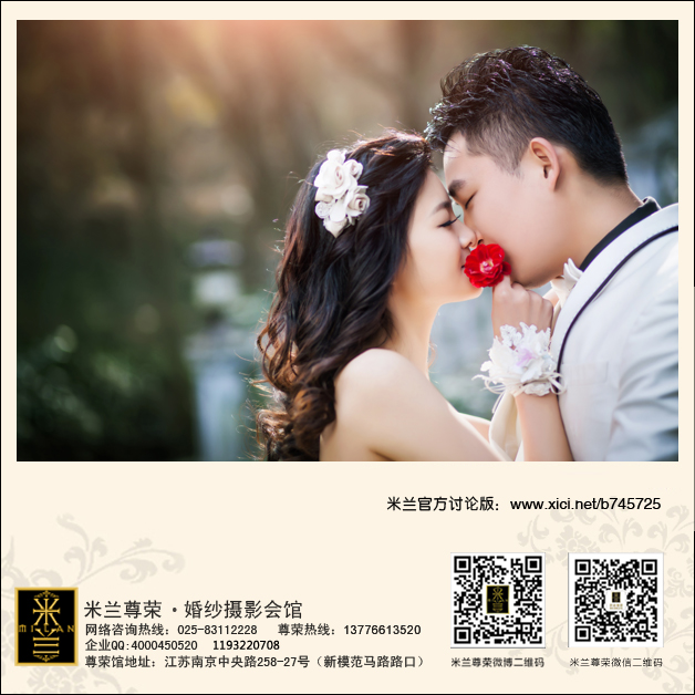 拍照的时候千万不要急着往前靠,近大远小的原理大家都懂,越是前面的人越显得胖,拍婚纱也是,如果想要显得娇小一点,站在新郎后面是最好的