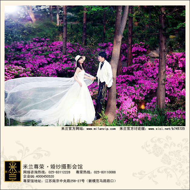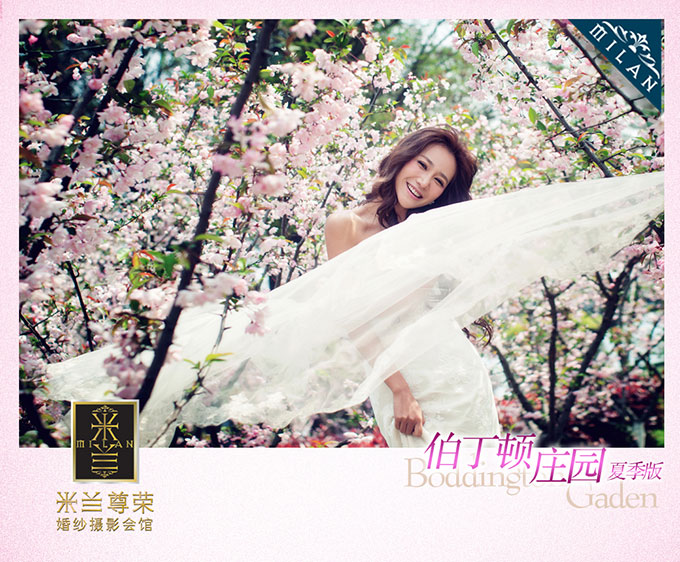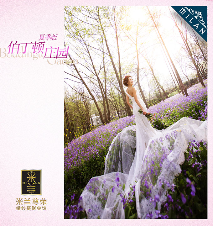 后面的都是比较亲近大自然的外景,嘿嘿,也是我个人更偏爱的呢。这个是米兰独有的伯丁顿庄园里的紫色花海外景,整个片片都仿佛置身在紫色花海里,浪漫又温馨啊!还是延续了米兰一贯主打的大气风格路线。