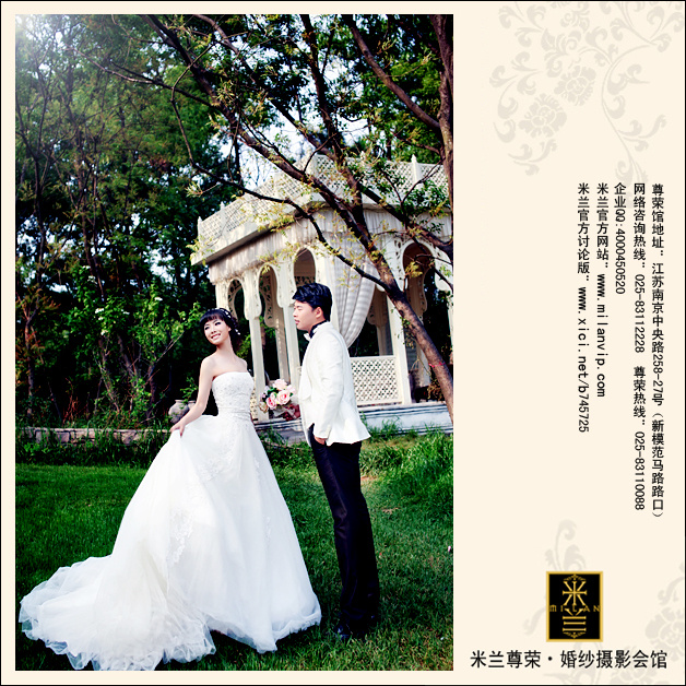 远处是一座典雅的华庭,如果你们即将在那边宣读爱的誓言,牵手最爱的那个人的你,应该也是会笑的如这一对美好的新人一样,幸福之情溢于言表吧。