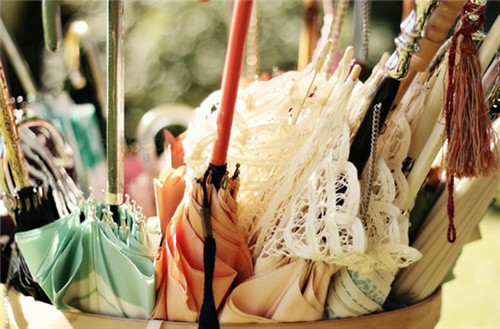 多彩的雨伞就这样堆在小桶里,其实看起来也很有一番复古风味不是么?