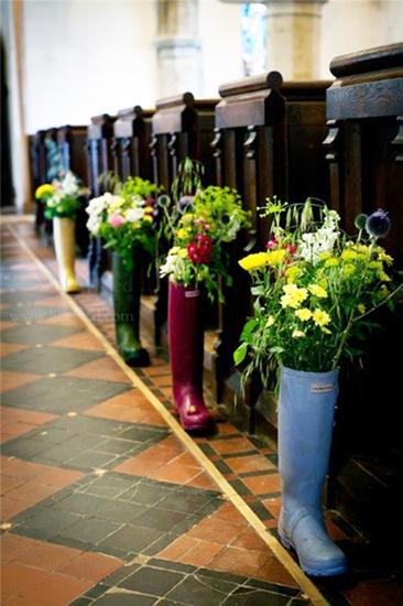 雨靴还能当做花瓶一样使用,不同颜色的“花瓶”搭配看起来既有趣又好玩~应该会成为非常受欢迎的婚礼拍摄场景哦。