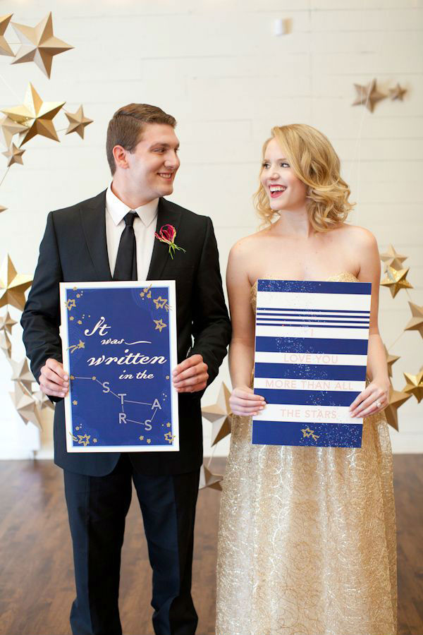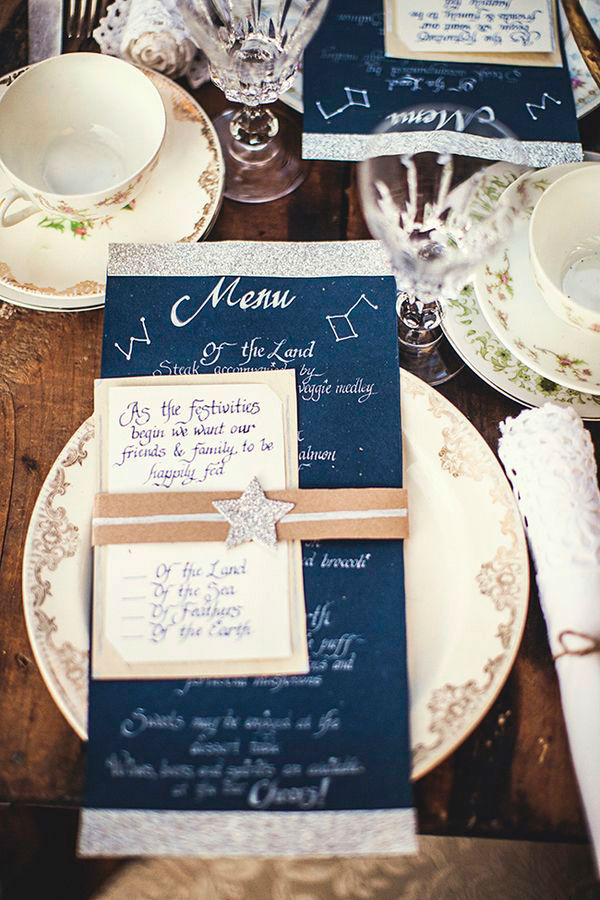 千万不要忽略婚礼上的每个小细节,无处不在的星星装饰,让你在被星星包围的氛围中感受无限的爱与被爱。婚宴餐桌上简单的星型桌牌,有意思的星座卡片,烛台上闪耀的星星logo,亦或是印有星星的餐单,都能为你的婚礼的增添无限的梦幻色彩。