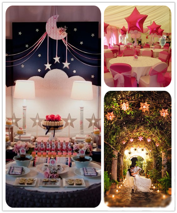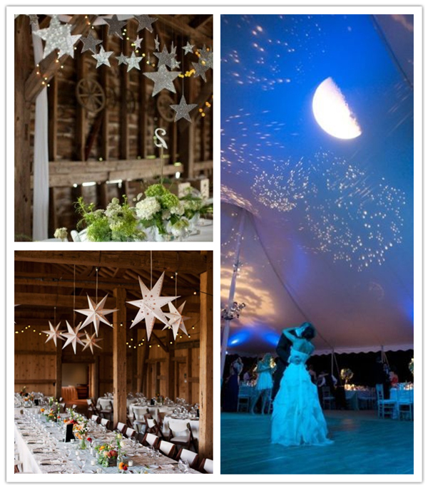 不论是户外草坪婚礼还是酒店婚礼,各种形状的星星都是婚礼上最美好的存在,特别是在夜幕下,一盏盏暖黄色的小灯、绚丽的火树银花、灵动的烛光让光影交织,营造出极致浪漫的婚礼氛围,星光下的第一支开场舞一定是最浪漫的桥段。