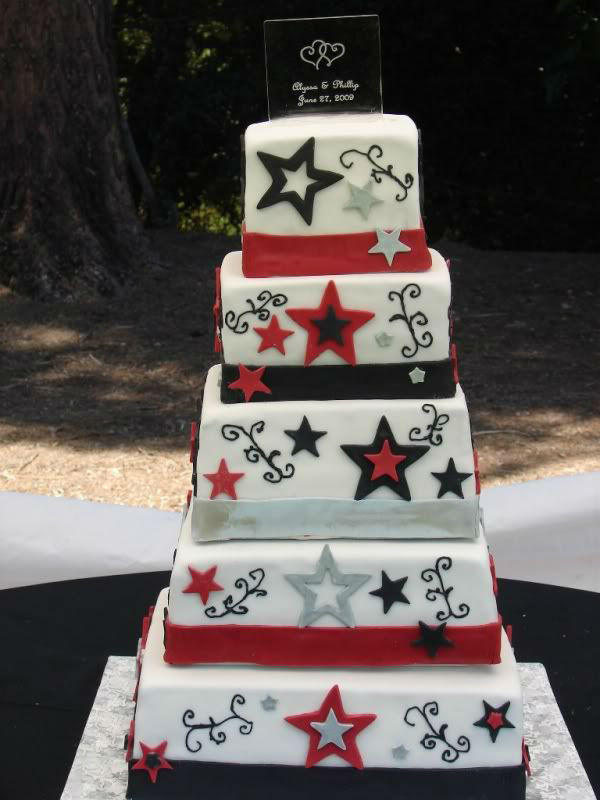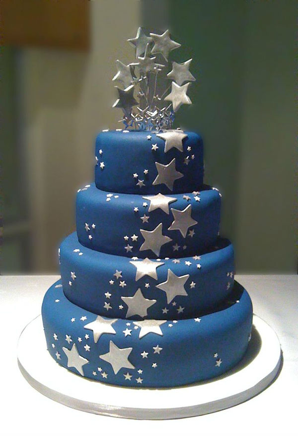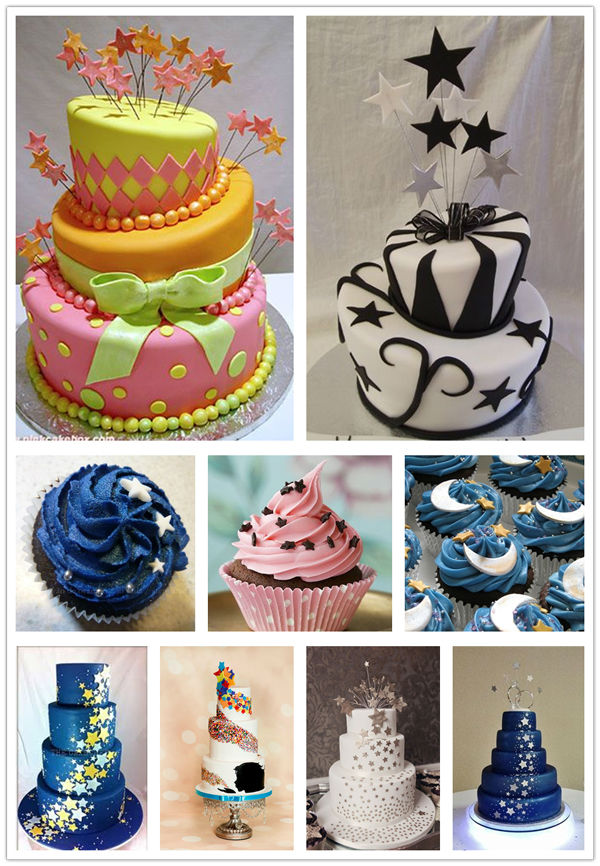 闪耀的银色、星空一样的蓝色、炙热的红色、俏皮的黄色,相信不论是哪款星星婚礼蛋糕都会让婚礼当天的来宾感受到这场婚礼带来的甜蜜感觉。