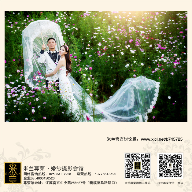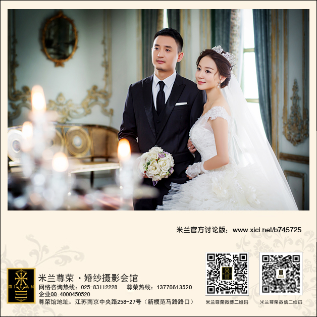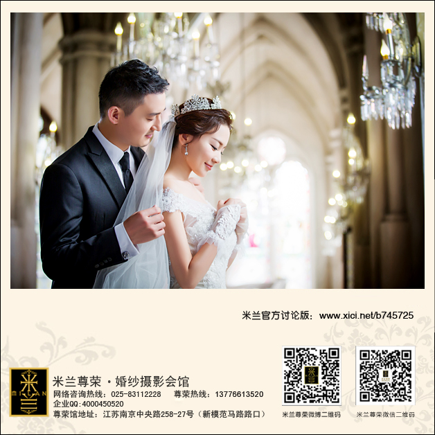 很早之前就有听说过米兰尊荣婚纱摄影了,口碑一直很不错的,所以就想说以后拍婚照也一定要在米兰拍,终于到了结婚的时候,身边在米兰拍摄的人也蛮多的,对这里的喜爱也越来越多啦,和老公商量了一下对比了几家后,我如愿以偿的定下了米兰拍摄。赶巧了,我是在米兰的最新场景拍摄的,米兰的新场景还是一如既往的大气,很大很奢华,第一次进去就被震撼到了,真的很美撒,相信在这样的场景拍出来的婚照是绝对不会差的。我的摄影老师是米兰唯一的女摄影师王勇,别看人家是姑娘,拍起照片来一点都不含糊,对于角度啊光线啊都很严格,也就辛苦助理们跑来跑去的做调整啦。化妆老师是汪丹丽老师,非常会做造型的老师,温柔而且有创意,让我每一套的造型都非常的完美啊,有这么好的团队,一整天都是在很兴奋的状态下拍完的,拿到婚照后果然没有让我失望,每张照片都很满意的。在此感谢米兰家的工作人员,不多说了,小晒几张婚照,哈哈~~~