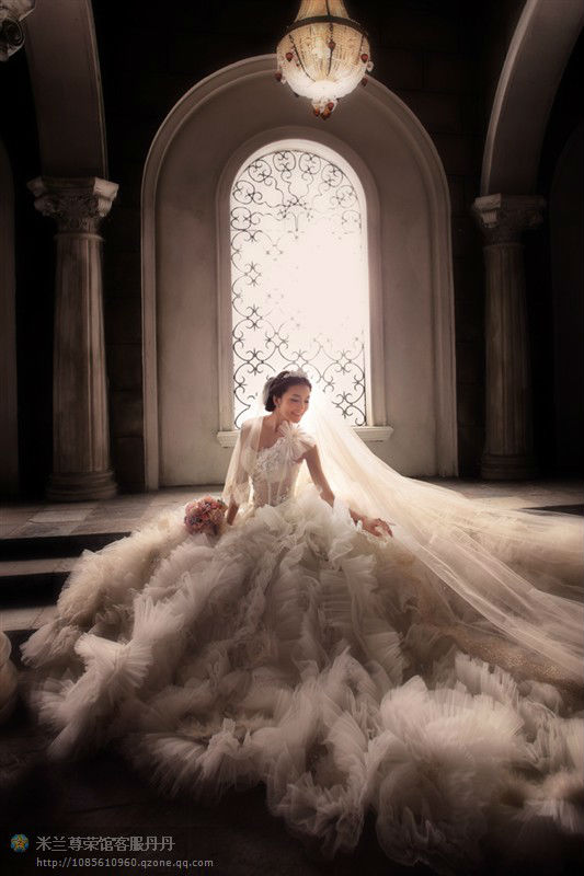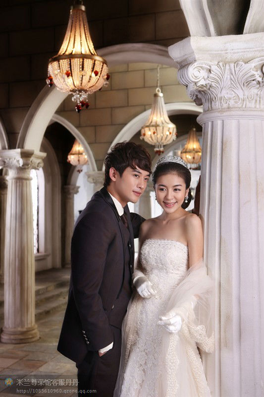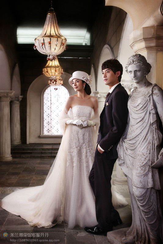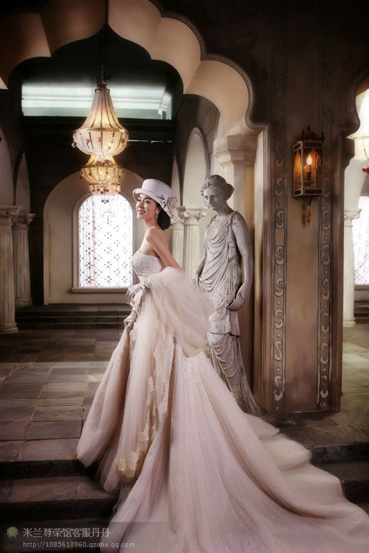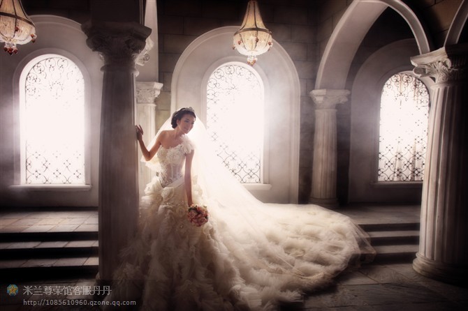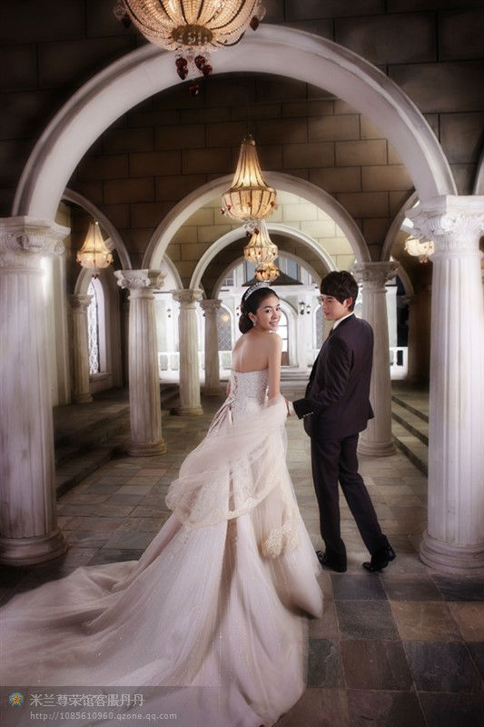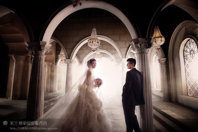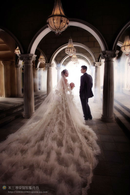 罗马柱·雕塑像·拱形门·古吊灯和新人那美丽质感的长长的纱幔绘出了如梦般的美妙画卷