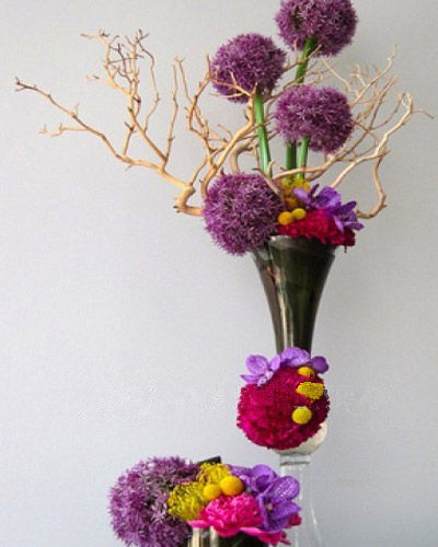 大花葱花序硕大,它的花梗自叶丛中抽出,球状花序由上千朵小花组成,紫红色的小花呈星状展开。花球也随着小花开放而逐渐增大,美丽异常。它的花序大而新奇,色彩明丽,深得人们的喜爱,也是日本花艺中最常用的花材之一。大葱花属于进口切花花材,可以提前向花商订购。