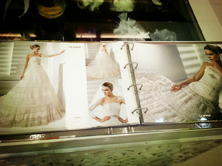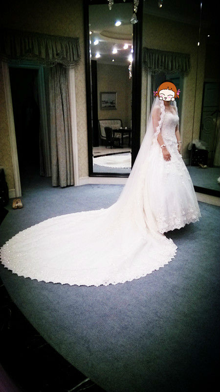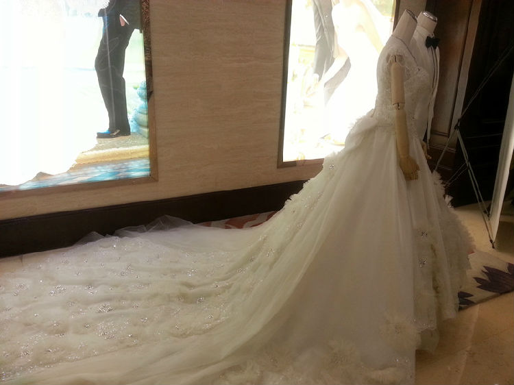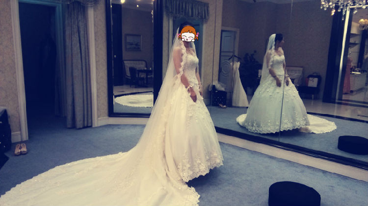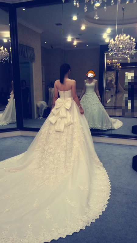真是大赞!尤其是画册上的几件嫁衣,被米粒的小洋妞驾驭的那么完美!让我很是激动,恨不得立马就去穿上几件试试! 由于完美下完米兰家的订单之后,时间已经很晚了,宝娜也快到了下班的时间,但是店员们丝毫没有马虎对待我们,依然超热情,超细心的为我们介绍,给我看电脑里储存的每一件嫁衣!还亲切的跟我说,有没有看中的?我们可以拿出来给你上身试试!真的好有耐心,因为我知道时间不多,也不想耽误他们太多的下班时间,所以我就大致选了两件,让他们给我试试,一件长托,一件齐地!