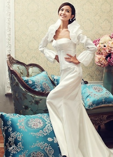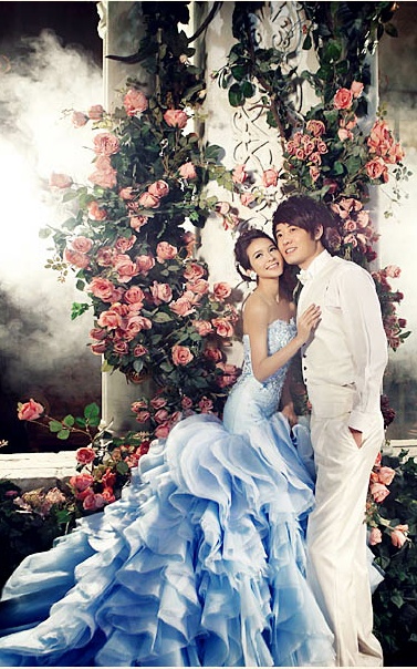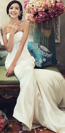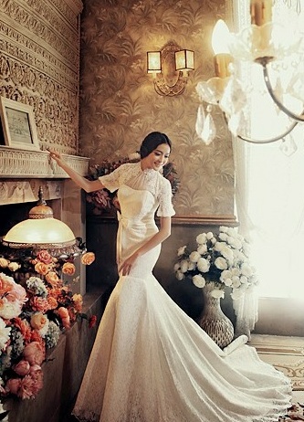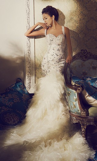 照片中的新娘真的是好瘦呀,鱼尾款真的是太挑身材了啊,要不会显得跨很大的呢,哎,我要抓紧时间减肥,为了能穿上美美的婚纱,加油加油!