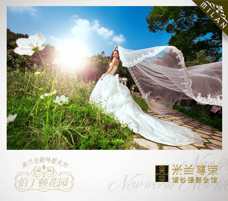除了石桥,伯丁顿花园还有欧式的小亭子和亭前大片的花园供取景拍摄。有了这样的欧式小亭子,草地便有了私家花园的感觉,即使不在小亭子里取景,仅把亭子作为背景,像样片中的模特那样幸福的抛起头纱,或是温馨的两人漫步在花园小径上,也是非常有感觉的呢。