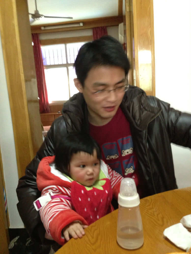 带着小侄女的小瓶子,帮小姑娘揩口水的样子很有爱哦