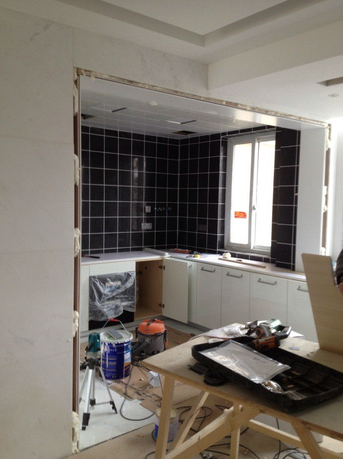 门套竟然也能发漏了,只有个半成品门套。我以为做门的不靠谱,没想到橱柜也给我发小了一块板。瓷砖都是80*80切成20*20,然后又找了专业美缝的填了下缝。