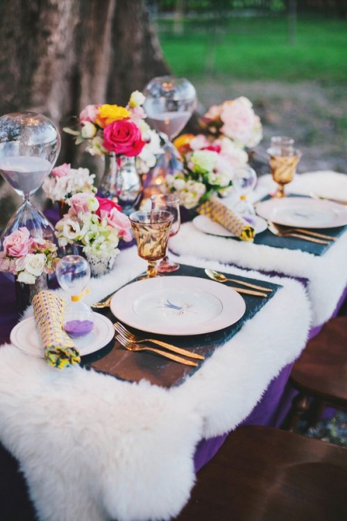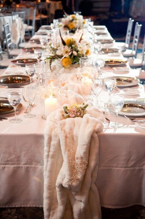 而在婚礼布置上,桌布、垫布、摆饰、椅背装饰,甚至地毯都可以加入毛绒元素,创意总是永无止境,那么下面,小小编就带领大家看看毛绒制品可以怎么在婚礼上玩吧!