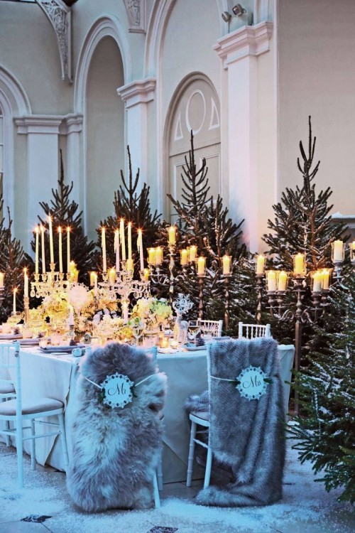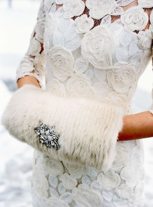 现在很多冬季婚礼上,新娘们都喜欢搭配皮草披肩,大衣以及帽子,这样即便在户外也不会感到异常的寒冷。