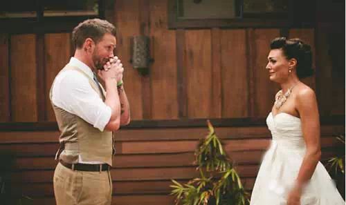 21.新郎揭开面纱的一瞬间,心跳正在加速。